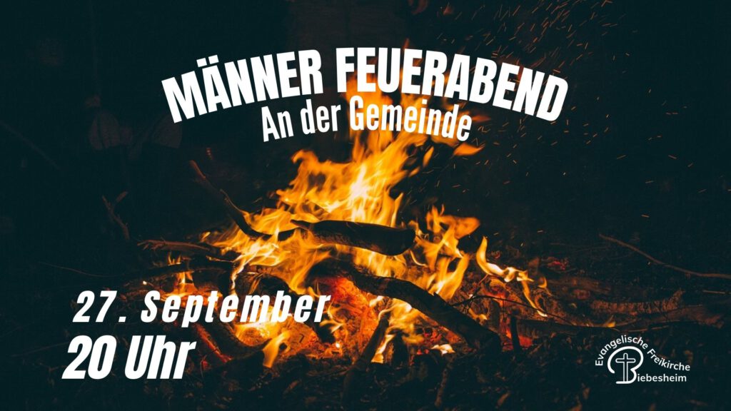 Männer, ihr seid eingeladen! Kommt am 27.9.2025 um 19:30 Uhr vorbei, wärmt euch am Feuer, genießt gute Gemeinschaft mit anderen Männern und vor allem mit Gott, unserem König. Für Essen und Getränke ist gesorgt.